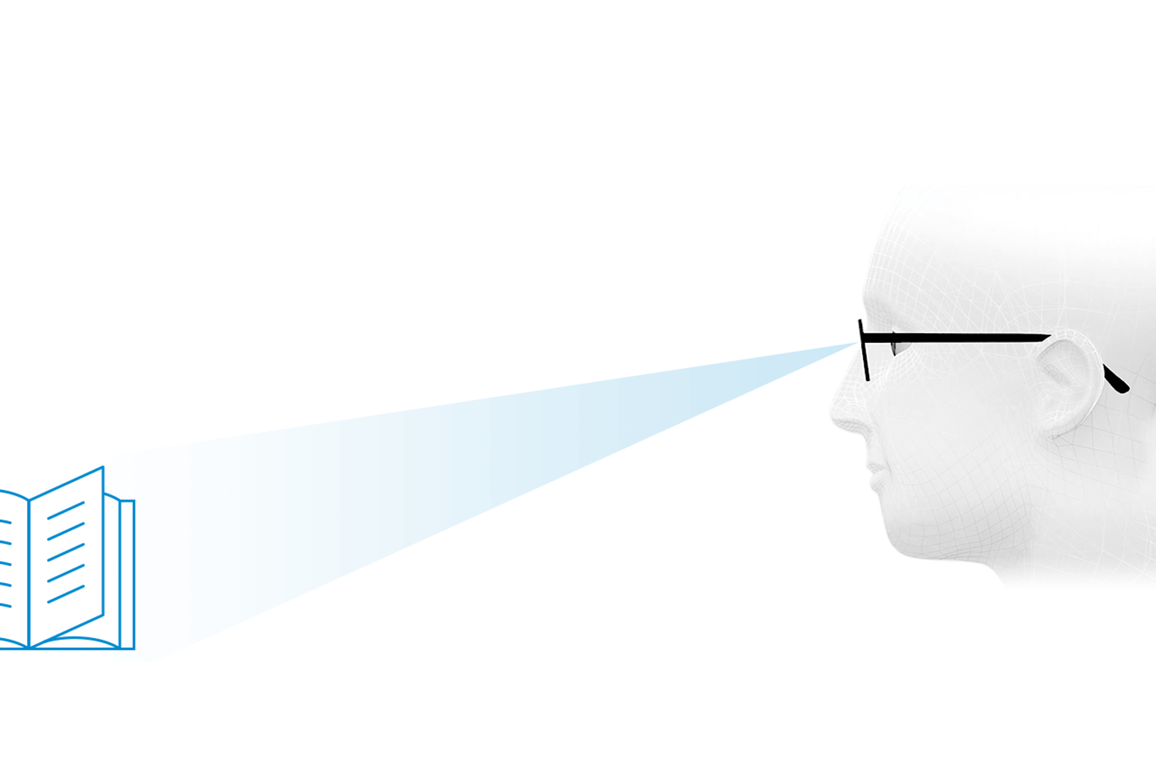 • Optimální vidění na dálku skrze horní část brýlových čoček, oblast na dálku.